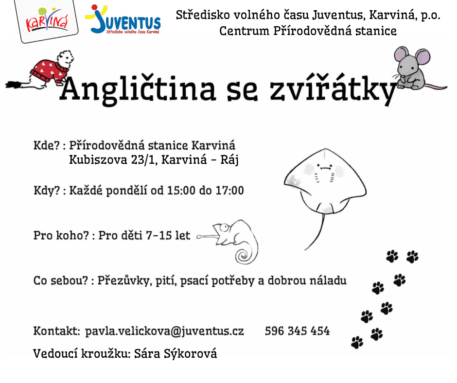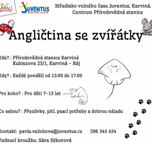 Má vaše dítě rádo zvířata a chce si hravou formou zlepšit angličtinu? Přihlaste ho do našeho nového kroužku Angličtina se zvířátky, který probíhá v prostředí přírodovědné stanice!
